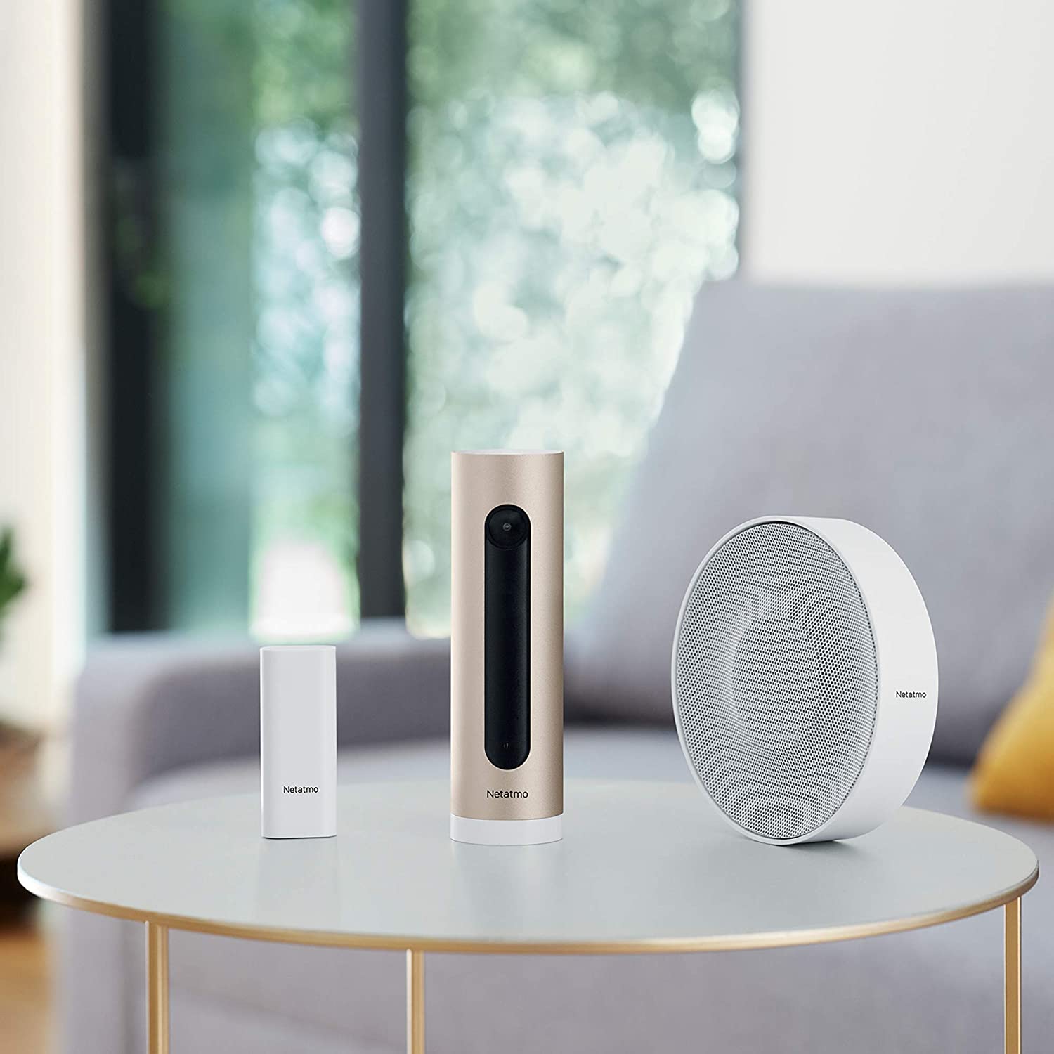 Le système d'alarme Netatmo avec détecteur, sirène et caméra intérieure.