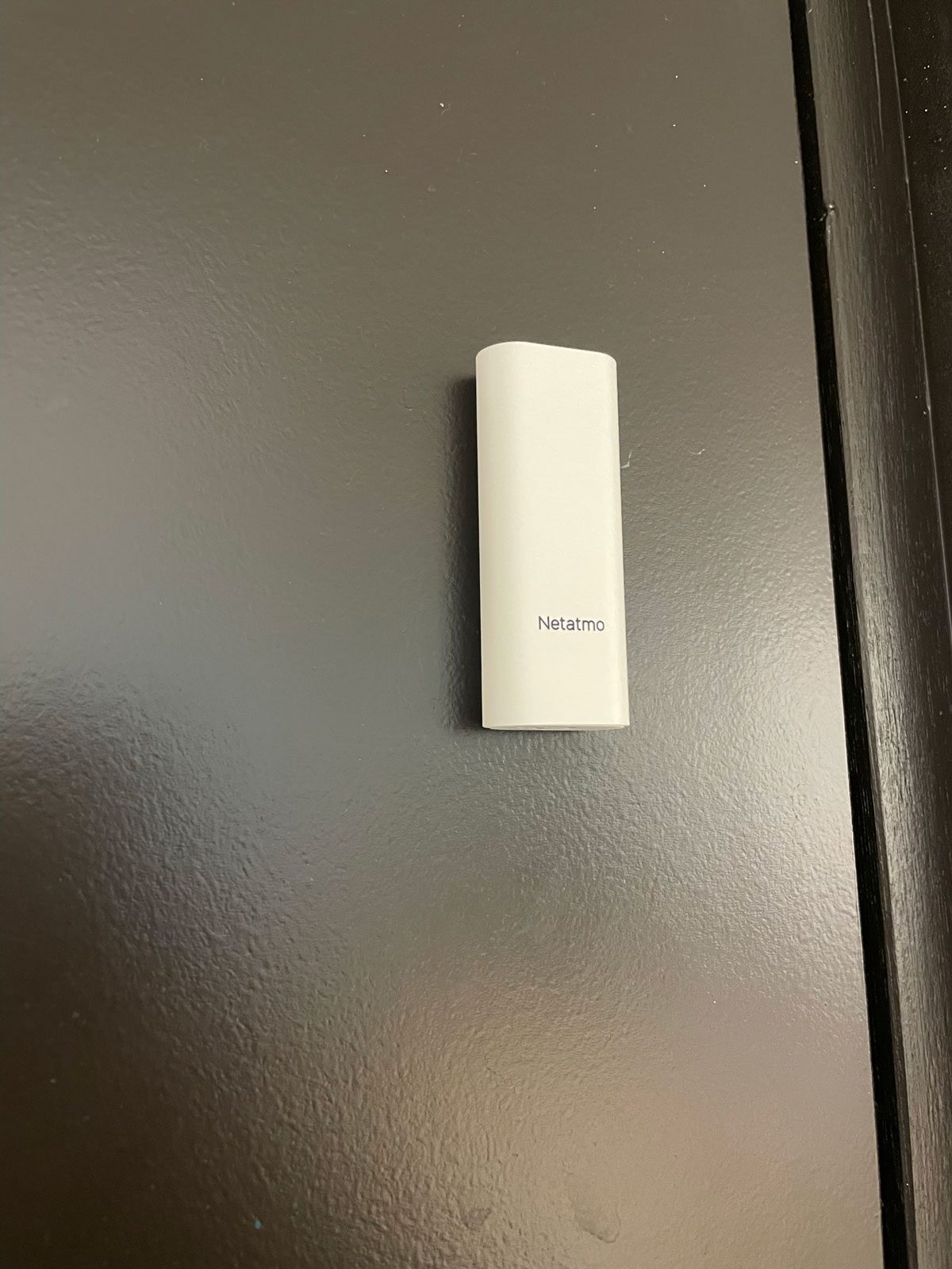 Le capteur intelligent Netatmo positionné sur une prote d'entrée.