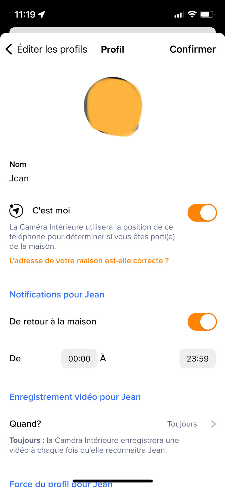 Ce que j’ai apprécié avec Netatmo, c’est la possibilité d’aller très loin dans les réglages, avec la géolocalisation de la personne, des notifications de retour à la maison (ce qui peu être pratique avec des enfants), ou encore la possibilité ou non d’enregistrer ses passages devant la caméra.